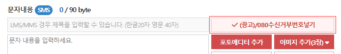 ※ "수신거부", "거부" 등으로 표기는 불가, 반드시 "무료"가 표기